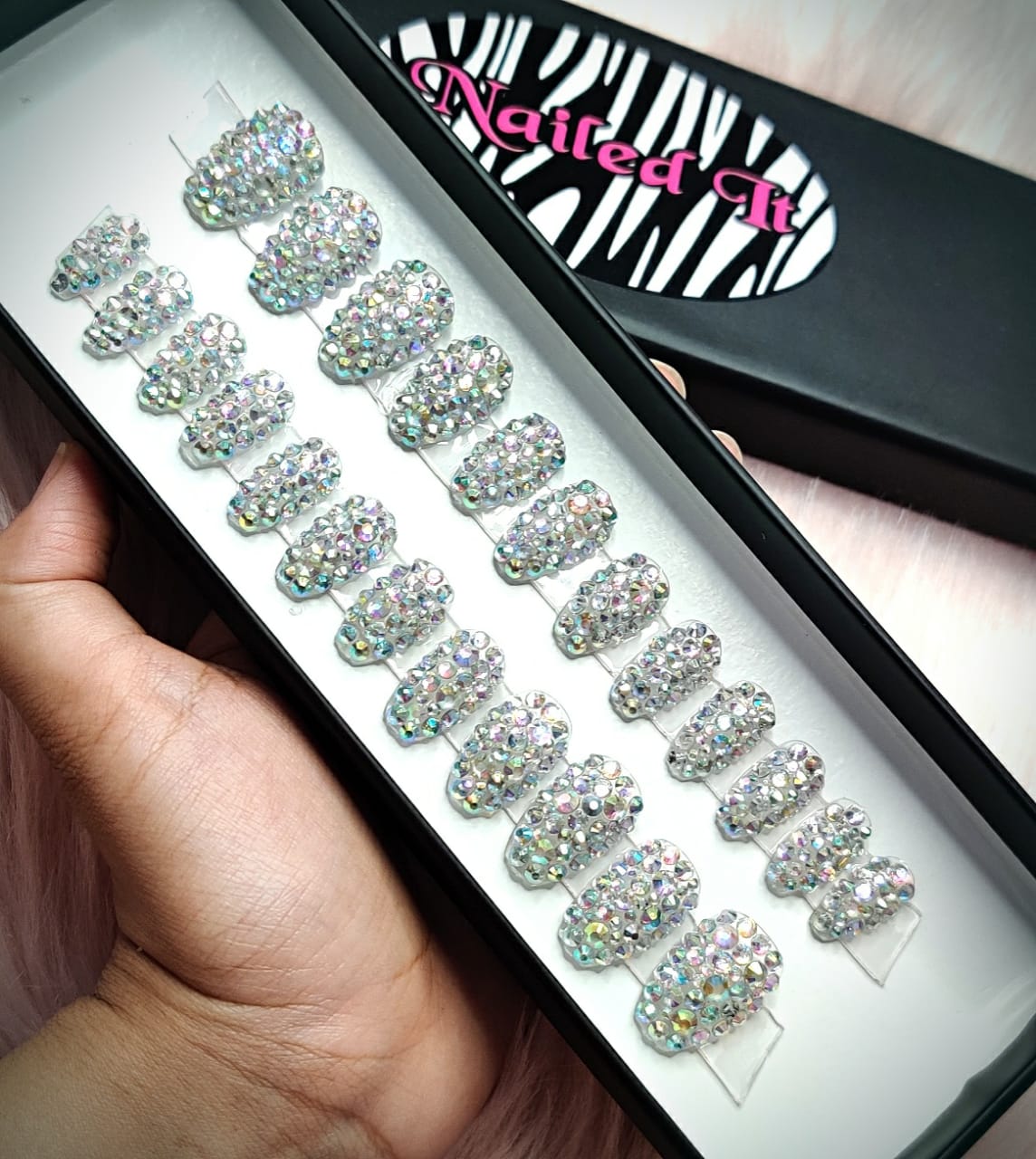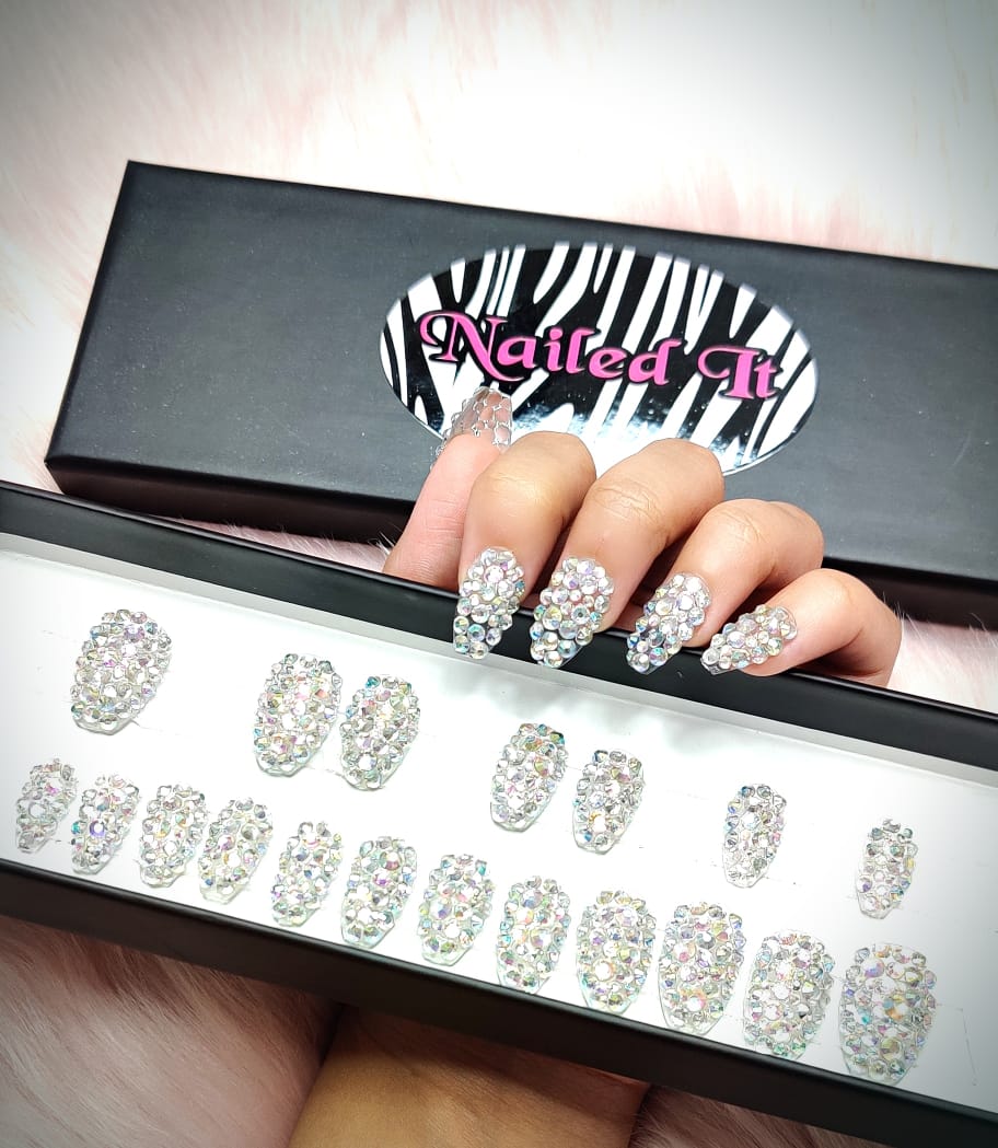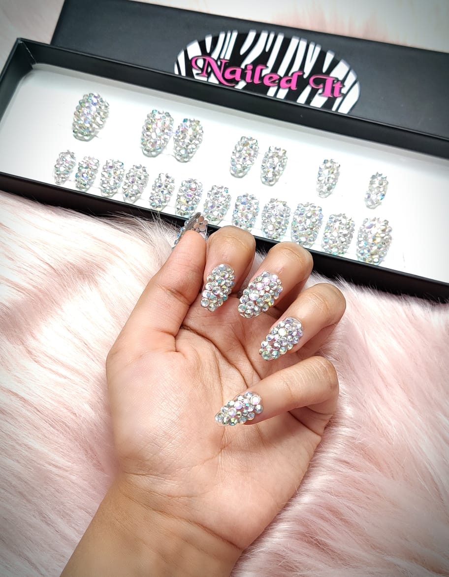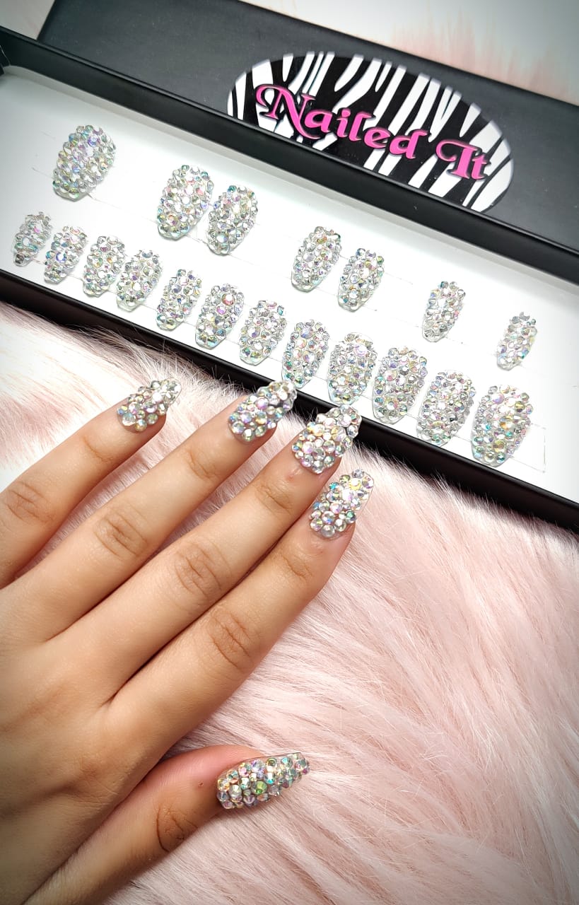 • All Nails With Rainbow stones